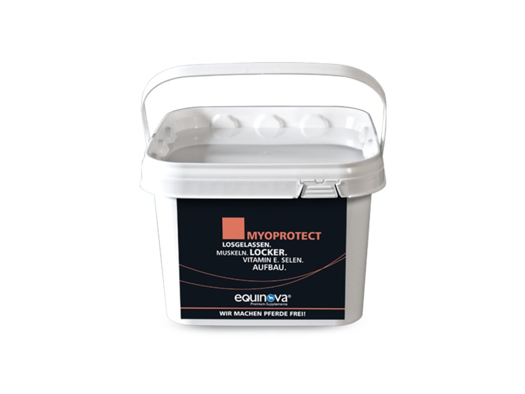 Equinova® Myoprotect ve formě prášku je doplňkové krmivo pro podporu růstu svalů a regeneraci po fyzické zátěži. Během tréninku a závodů jsou svalové buňky vystaveny zvýšené zátěži. Obsažené aminokyseliny jsou nedílnou součástí svalových buněk a zajišťují jejich rychlou regeneraci. Díky kombinaci vitamínu E a selenu jsou pak buněčné stěny chráněny před škodlivým vlivem peroxidů, což umožňuje správnou funkci buněk.