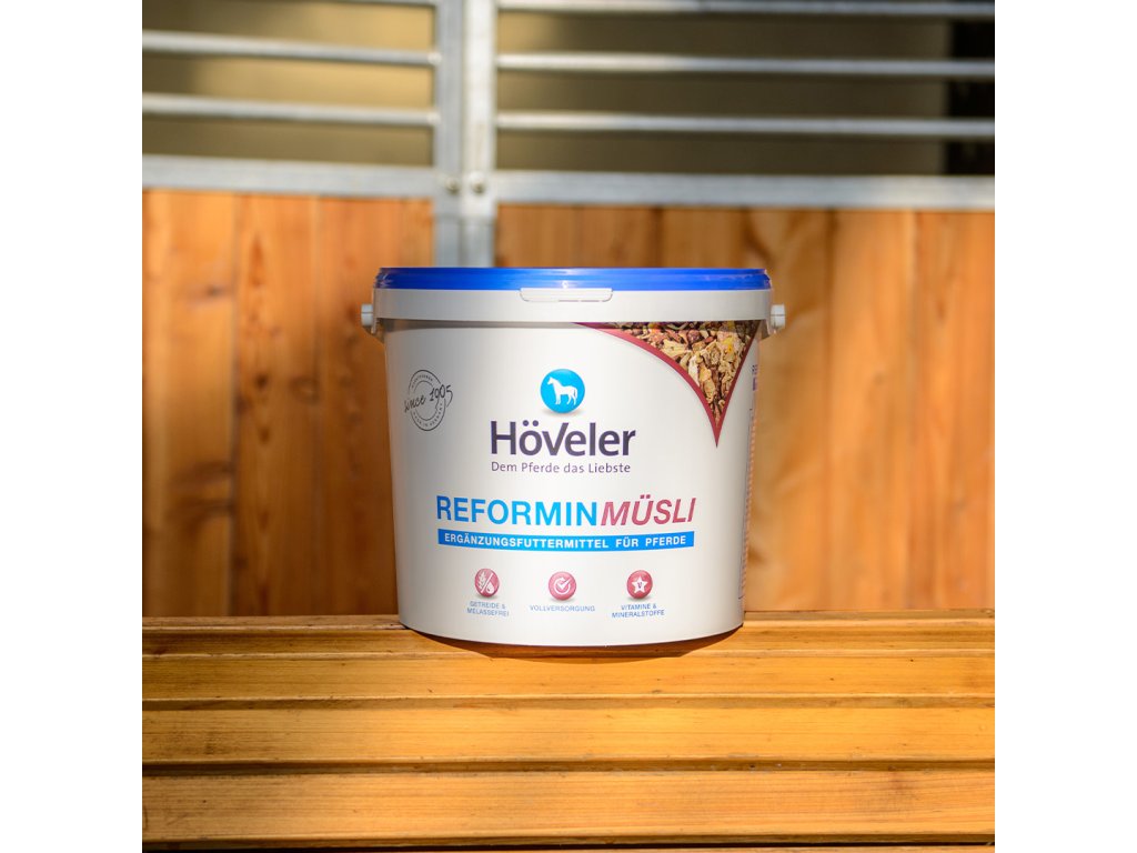 Höveler Reformin Müsli byl vyvinut a testován vědci ve spolupráci s odborníky a je ideální alternativou ke konvenčním minerálním a vitamínovým doplňkům. Chutné müsli bez obilovin a melasy koně dobře přijímají. Je zvláště vhodný pro robustní koně a pro koně, kteří potřebují minerální doplněk, ale současně i omezený příjem jadrného krmiva.