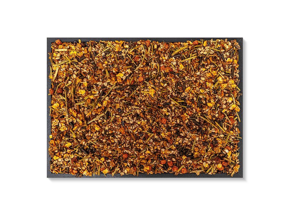 Kukuřičné vločky, ječné vločky, vojtěška, karobová moučka, 6 % melasa, ječmen, slunečnicová extrahovaná mouka, extrudovaná kukuřice, 2,1 % lněný olej, uhličitan vápenatý, pšeničné otruby, 1,5 % inaktivované pivovarské kvasnice, fosforečnan vápenatý, chlorid sodný, slunečnicový olej, kukuřičné klíčky, listy kopřivy, oxid hořečnatý, červená řepa, dextróza, 0,5 % bylin (listy proskurníku, jehličí smrku, kořen proskurníku, zelený oves, petržel, semena pískavice, skořápky šípku, pelyněk, kořen libečku, kurkuma, kořen kalamusu, zlatobýl, islandský mech, květy proskurníku, kořen pampelišky)